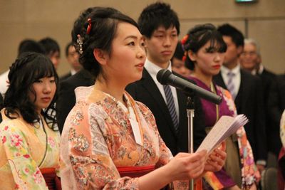 卒業生はスーツや振袖に身を包み、とても晴れやかな表情の中、開式しました。