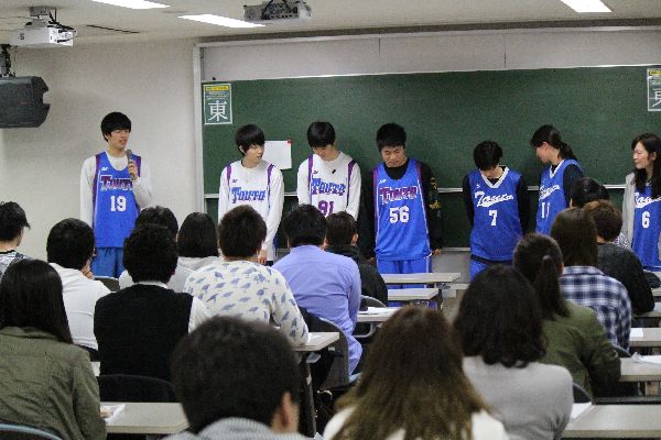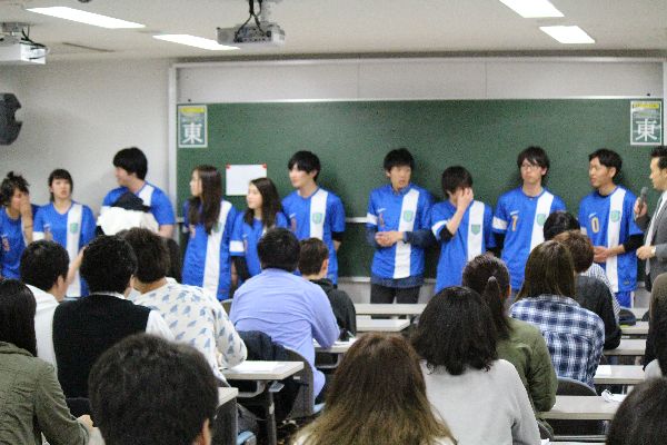 今年度入学されたばかりの新入生たちを対象に、2016年4月7日(木)、本校クラブ活動である、バスケットボール部、バレーボール部、サッカー部、野球部、格闘技部、水泳部の6つのクラブによる「クラブ活動紹介」を開催しました。少し緊張した様子の新入生を和ませようと、在校生たちがそれぞれのクラブ活動で趣向を凝らした発表を行い、時には新入生皆さんの笑いを誘う場面もありました。