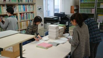 図書室で不明本や修理本の確認を含めた蔵書点検が行われています。