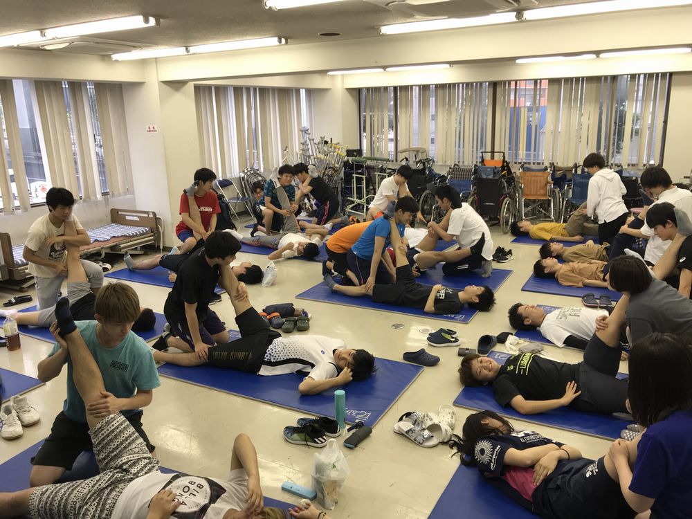 身体の仕組みを知るため1年生の初めのうちは座学が多くなりがちですが、自分の身体を動かすことで知識の再確認になったのではないでしょうか。頭の中だけで覚えるのではなく、実際に動いて覚えた方が印象に残りやすいのでおすすめです。1年生の皆さんは筋肉痛になっていないことを祈ります…(笑)