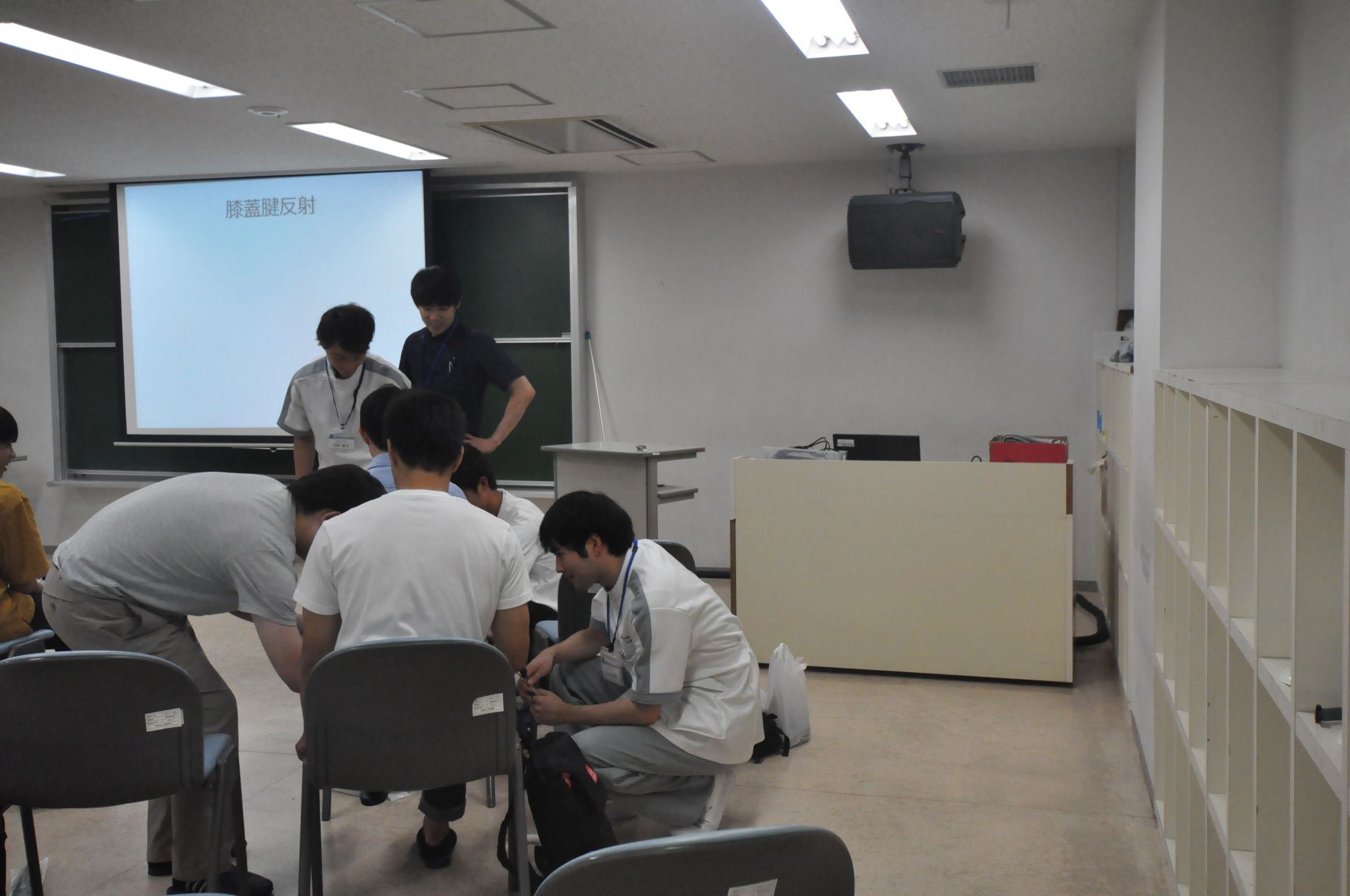 オープンキャンパスでは、体験授業や在学生との座談会、校舎見学を実施しました。今回の実技形式の授業では、理学療法評価を体験していただきました。理学療法士が実際に使用する道具に触れ、授業を体験してみることで、さらに理学療法士に興味を持って下さった方もいらっしゃったようです。また、在学生との座談会では、普段どのような学校生活を送っているのかを知ることができた、試験について聞くことができたのが良かったというご意見もいただきました。