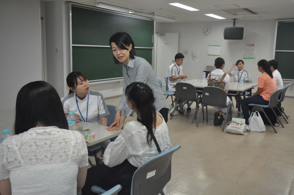 写真は、前回のオープンキャンパスでの座談会の様子と8月4日担当の渡邉先生と学生たちです。