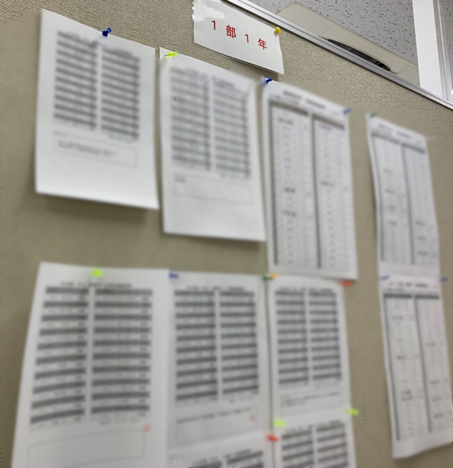 試験の結果が事務局の掲示板に張り出されています。