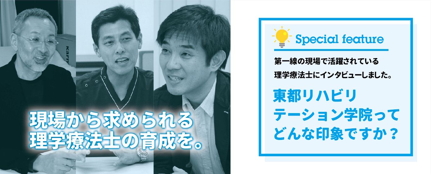この度、東都リハビリテーション学院では第一線の現場でご活躍される理学療法士にご協力いただき、「東都リハビリテーション学院の印象」についてインタビューを行いました!この企画は、第一線の現場でご活躍されており、経験の長けた理学療法士の先生方に「東都リハビリテーション学院は客観的にどのような印象なのか?」をご紹介させていただきます。是非とも本校へのご理解の参考になるようご覧頂けると幸いです。