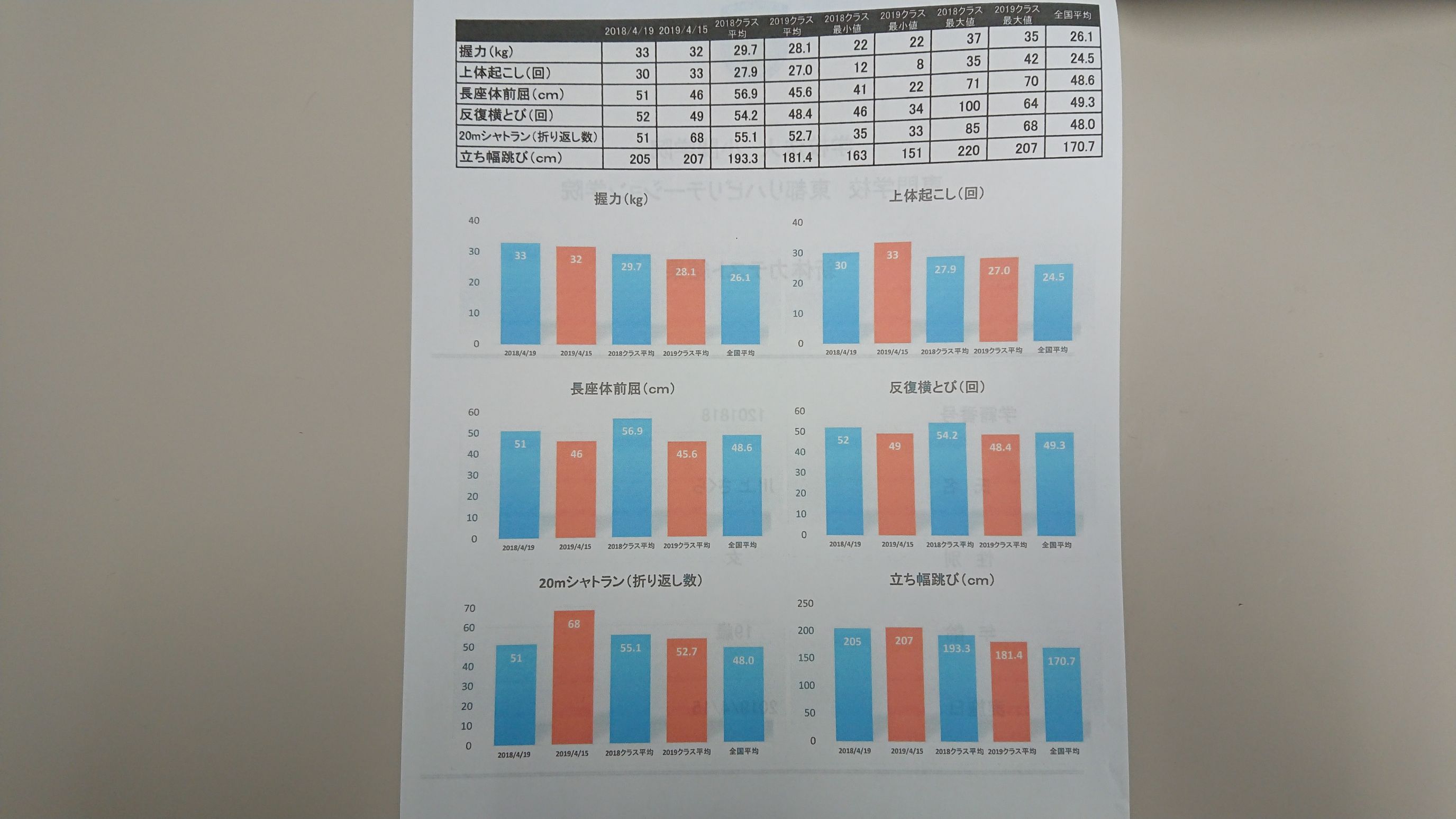 2年生の体育実技の授業において実施しました体力運動能力に関する新体力テストの結果を集計しました。