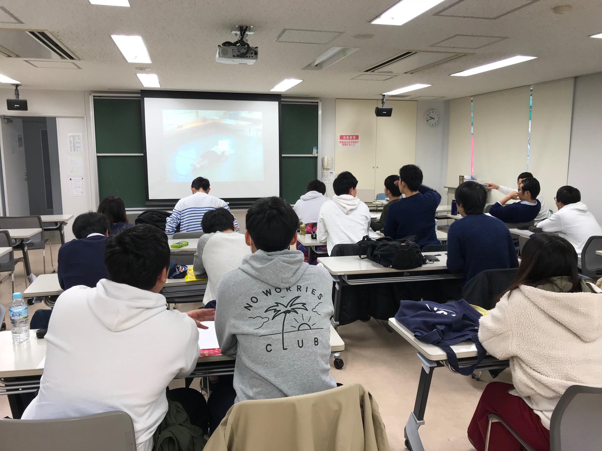 写真の1コマは、実際の患者様の動作を観察して特徴的な動きを分析し、自身が理学療法士であればどの様な検査を実施するかを検討している所です。1人で考えるだけでなく、学生同士で話し合い、その上で担当教員の考えを伝えることで、他者の意見も吸収できるような授業を心掛けています。臨床実習まで残り約4ヶ月!少しずつレベルアップしていきましょう!