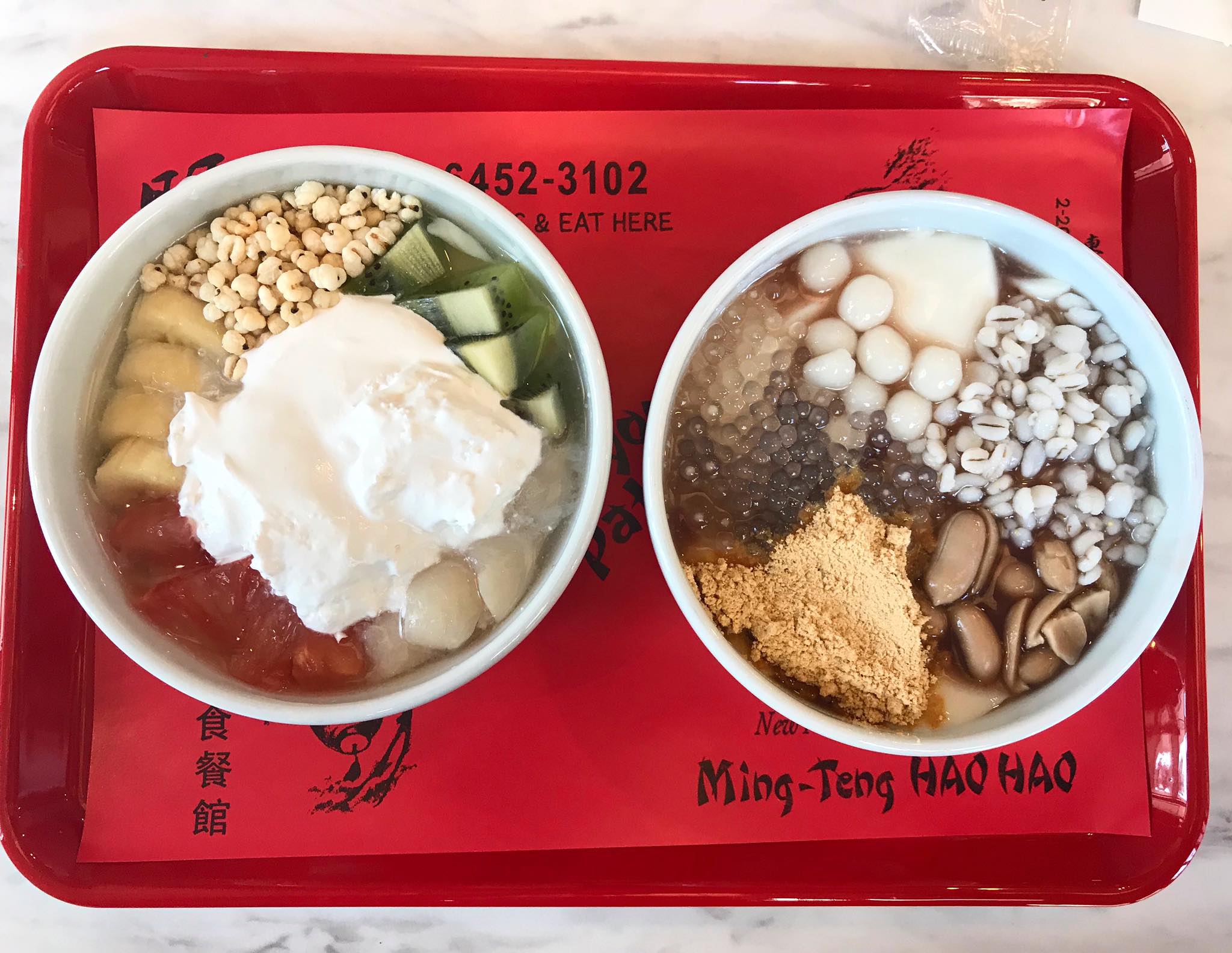 写真左が果実豆花(フルーツ)、右が明天豆花(ぜんざい)です。どちらもとっても美味しかったです。台湾スイーツといえば「タピオカ」が流行ですが「豆花」もオススメですよ!