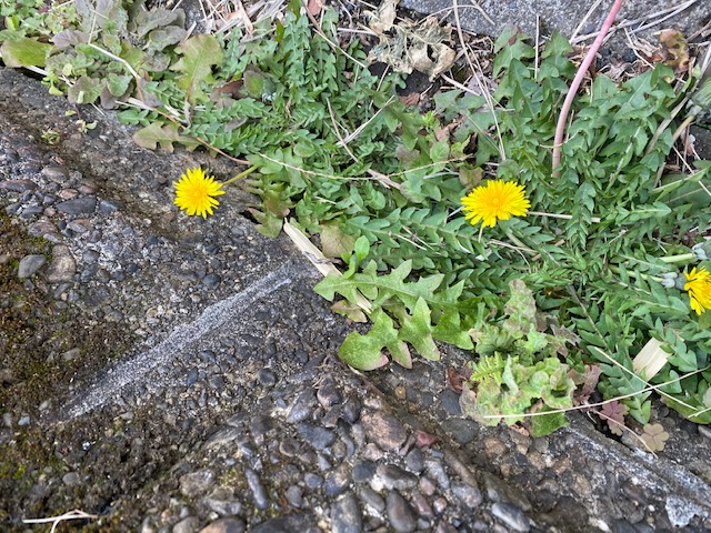 東都の南校舎の隣にある氷川神社の石垣にタンポポが花を咲かせており、