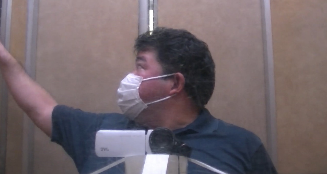 写真はエレベーターに乗り込み、ボタンを押す私です(エレベーター内の鏡に映っています)。