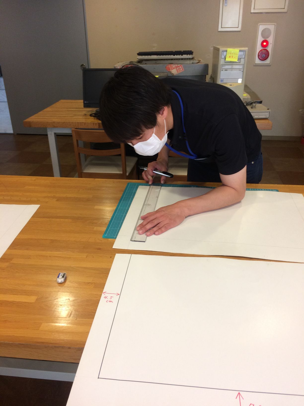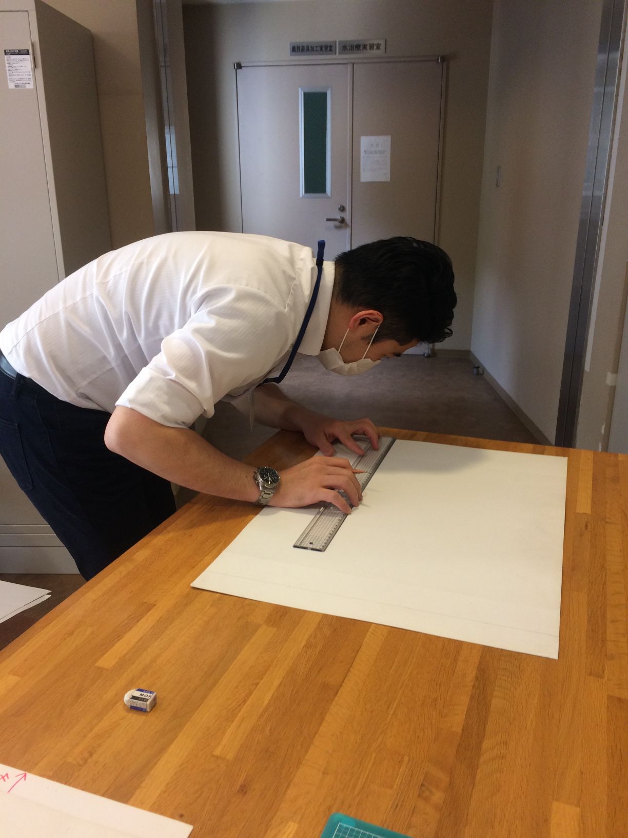 新1年生の担任である澤田先生・植竹先生が図面を引きます。
