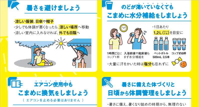 ポイントを参考にして、熱中症対策も実践しましょう!