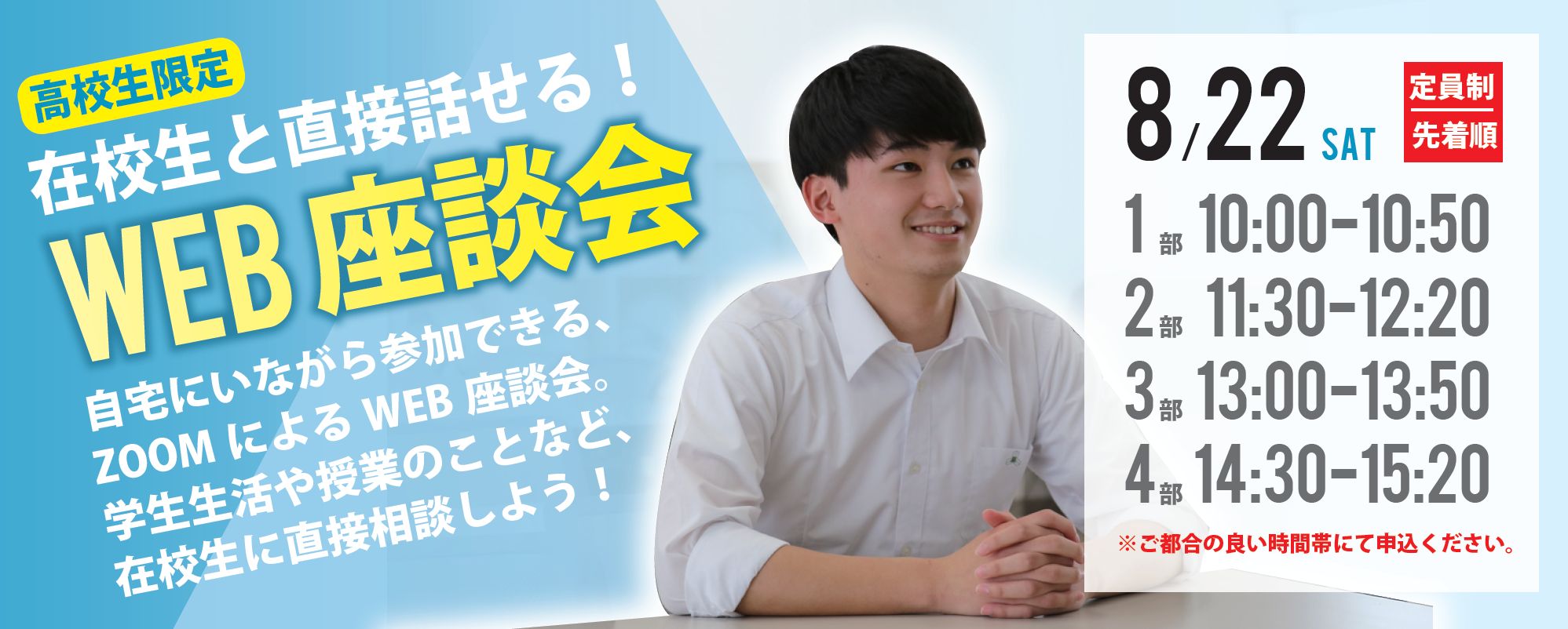 【ご案内】高校生対象|8/22(土)、在校生とのWEB座談会(定員制/先着順)