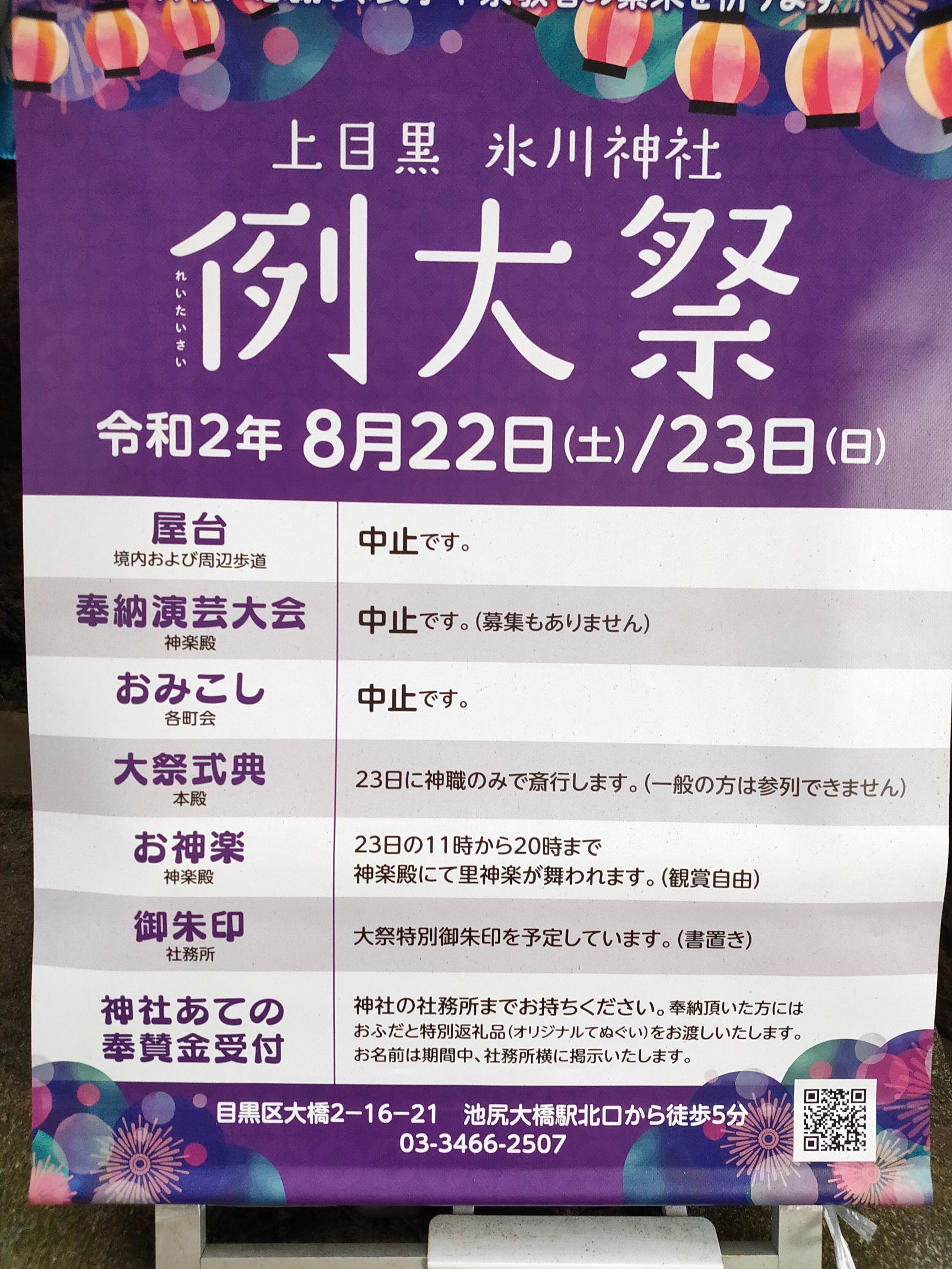 今週末が「例大祭」だそうです。「例大祭」とは神社にて一年に一度行われる特別な祭りだとのこと。しかし今年はコロナの問題が…
