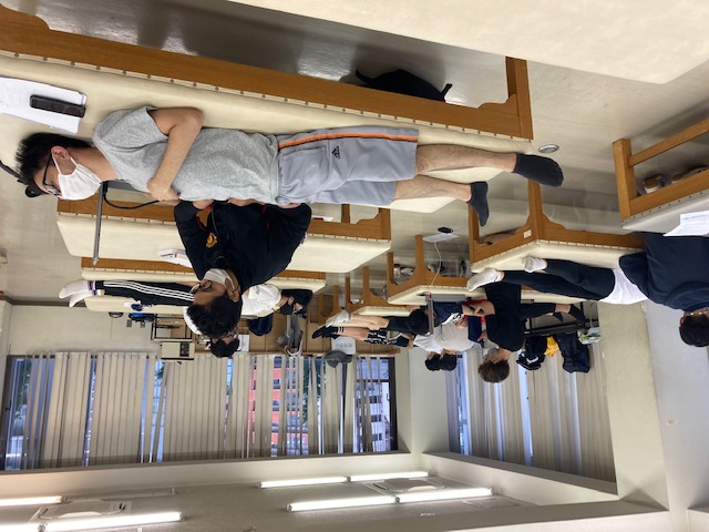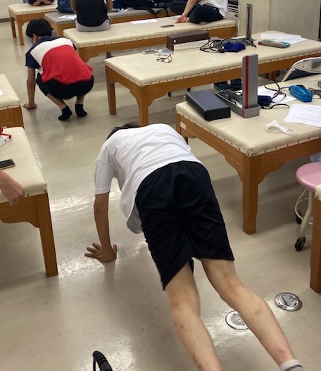 う~ん。ずっと計測だけでは飽きてしまいそうですね。ということで、遠隔授業でなまった身体を目覚めさせるために「ちょっときつめの運動」を行って、