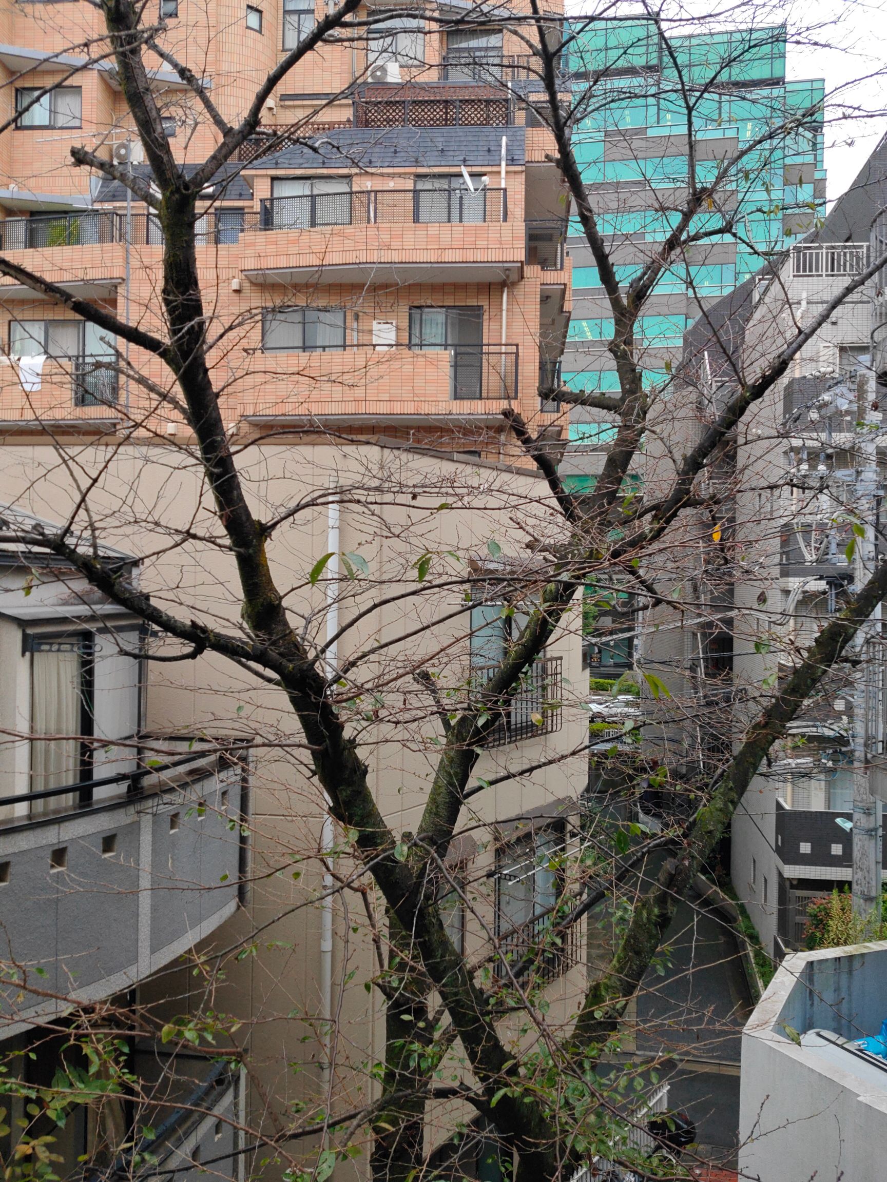 専任教員の川島です。教員室の前にある桜の木ですが、なんと、いくつかの花を咲かせています。