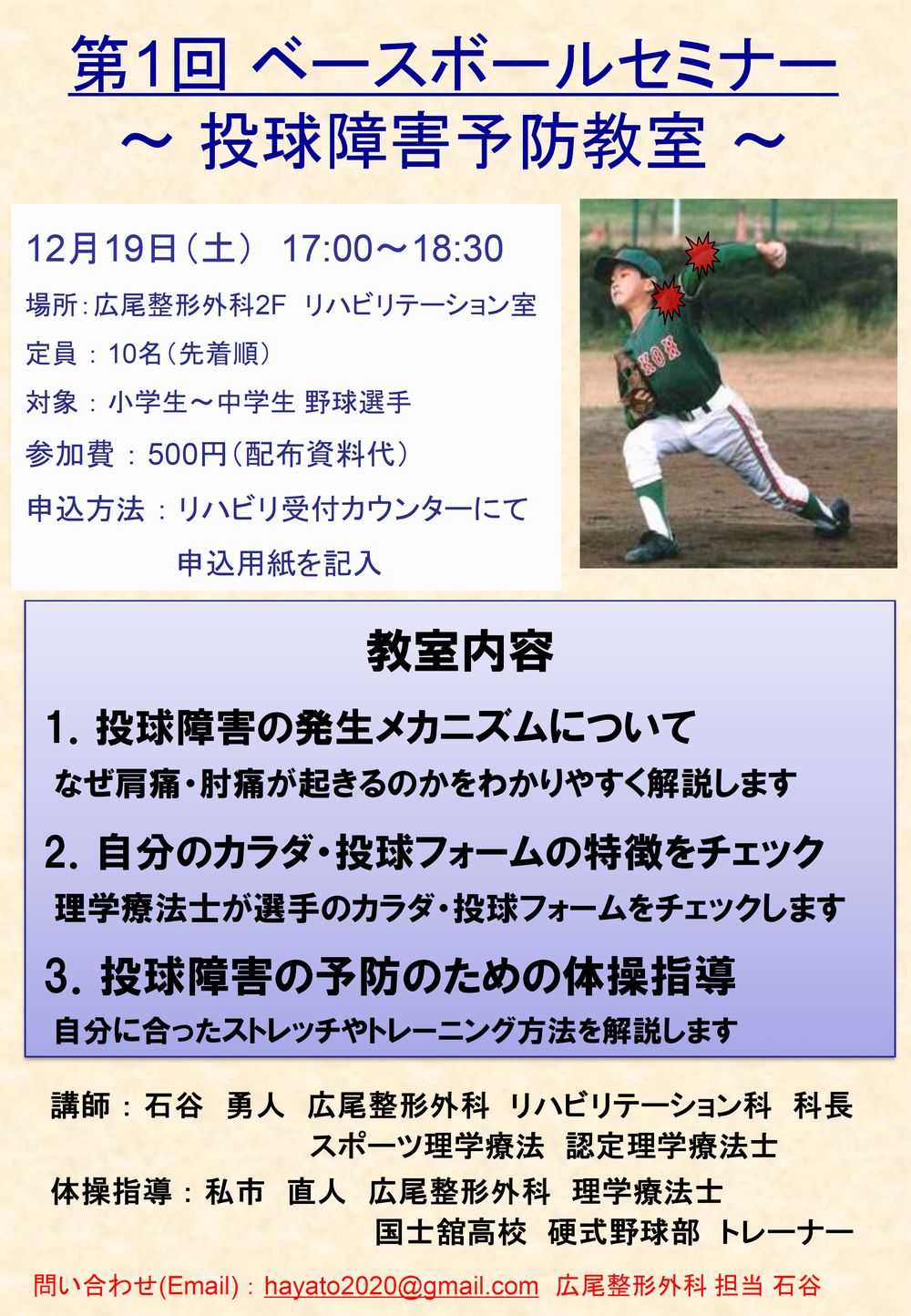※受付終了【告知】小中学生の野球選手を対象!12/19(土)野球教室のご案内(主催:広尾整形外科)