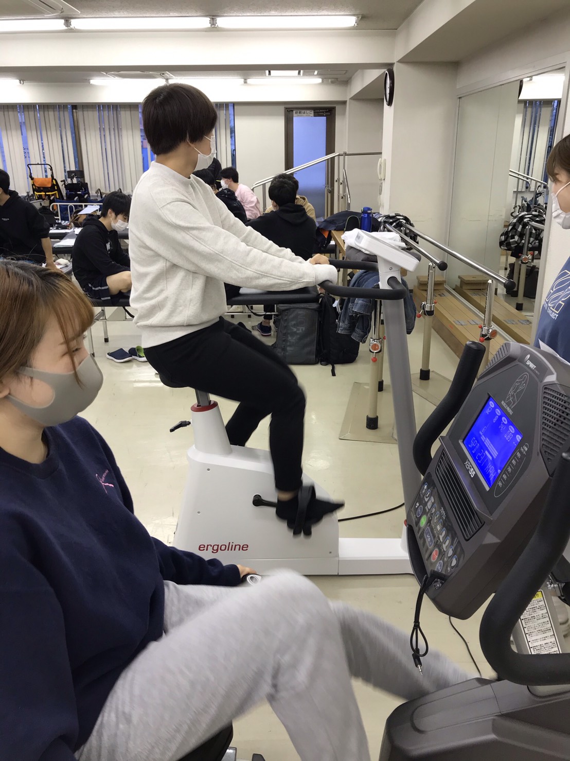 以前、本校のブログでご紹介した“自転車エルゴメーター”という機器を学生さんに体験してもらいました。