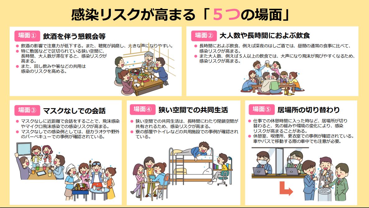 【重要/周知】「感染リスクが高まる5つの場面」新型コロナウイルス感染症対策分科会提言