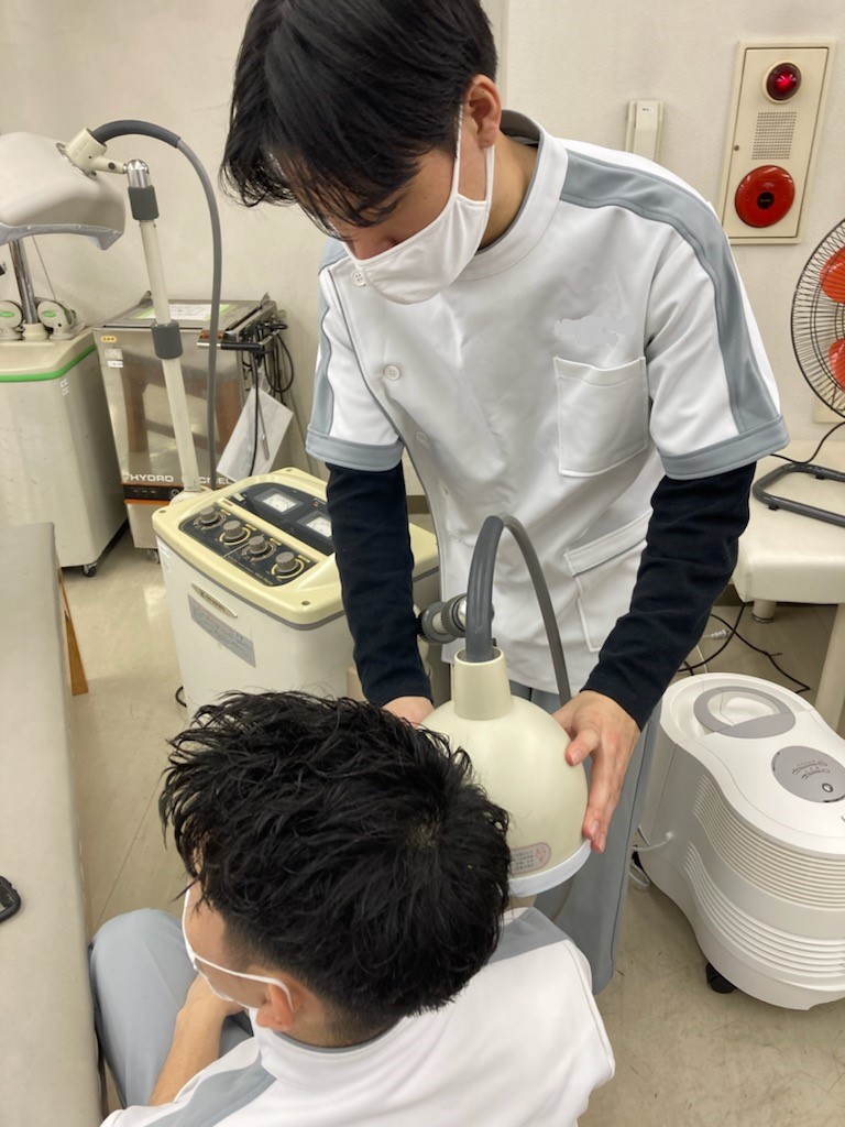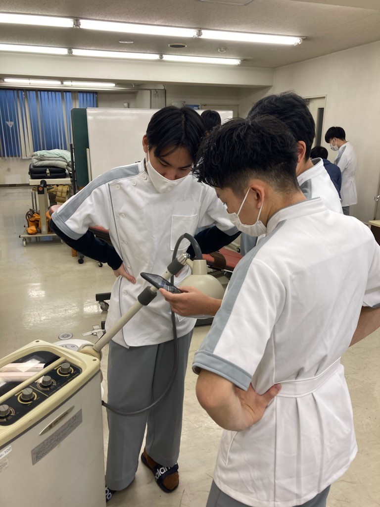 われわれは、自分の手や機械を用いた運動療法以外にも、熱や電気を利用して鎮痛や身体の調子を整えるための知識や技術も学んでいきます。