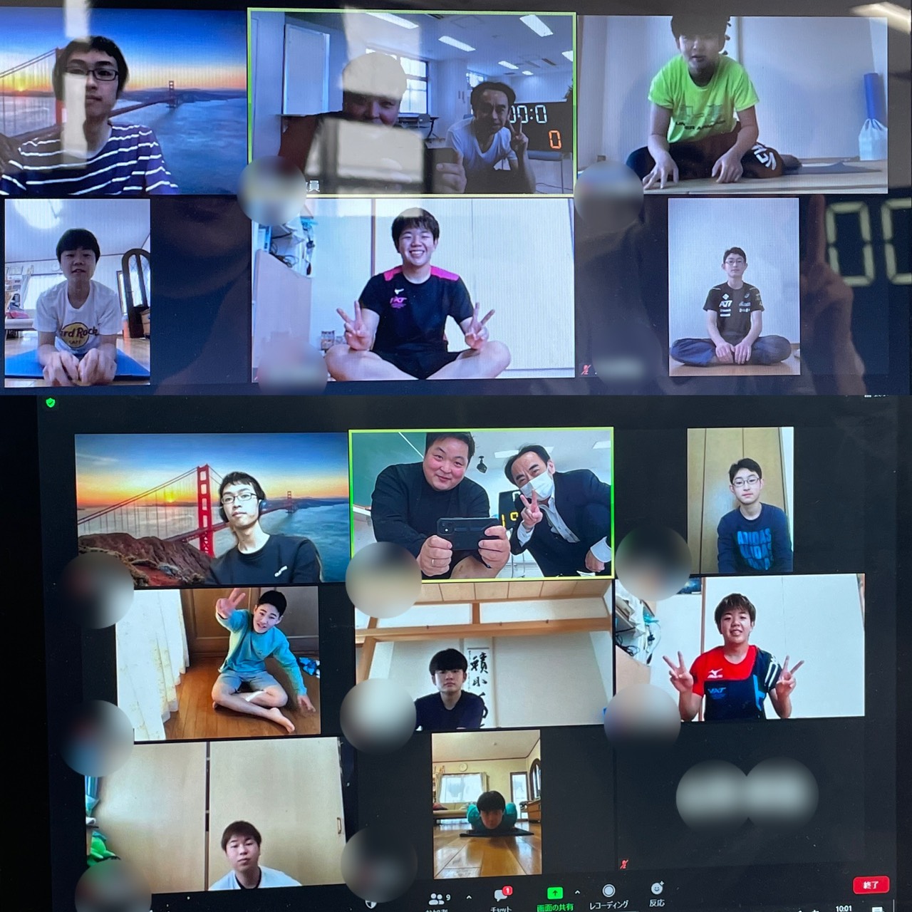自宅で展開出来るトレーニングメニューを中心に、参加する学生たちの様子見ながら決めています。みんな笑顔で生き生き頑張っています!