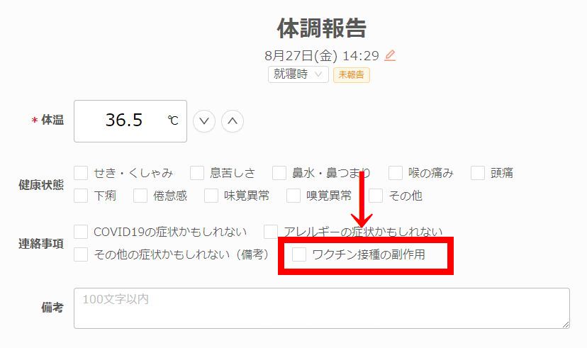 最近、学生からワクチン接種副作用の報告を受けることがあり、項目に「ワクチン接種の副作用」を新たに追加しました。