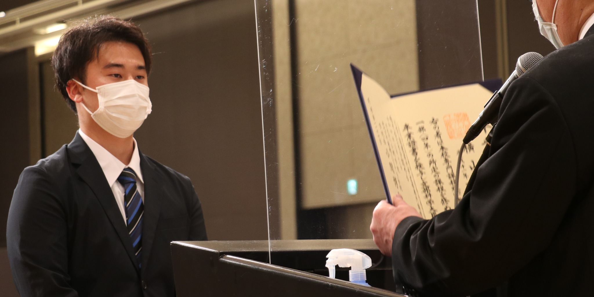 ※卒業式で学院長先生から卒業証書を授与する横山さん