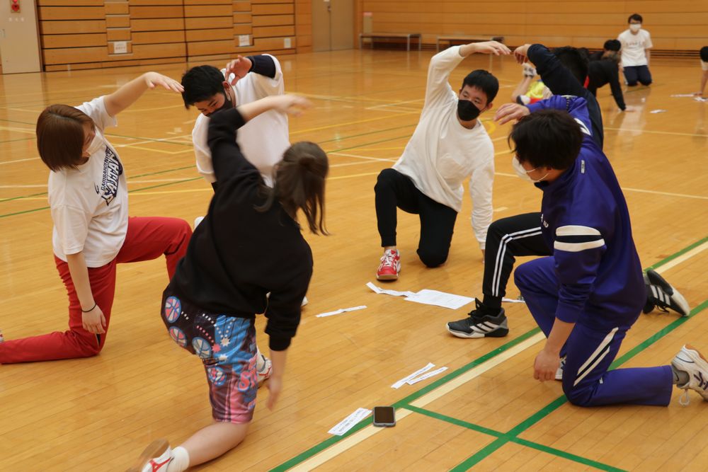 午後は、「(相手の)状況を考えよう」ことをテーマに、学生達が様々な状況や対象に運動指導を行うことを設定してプログラムを作成し、グループで発表の形式にしました。実際にその対象者の心理や状況などをイメージしながら運動指導することは難しいですが、学生達からとても良い発表が飛び交い、とても有意義な時間となりました。