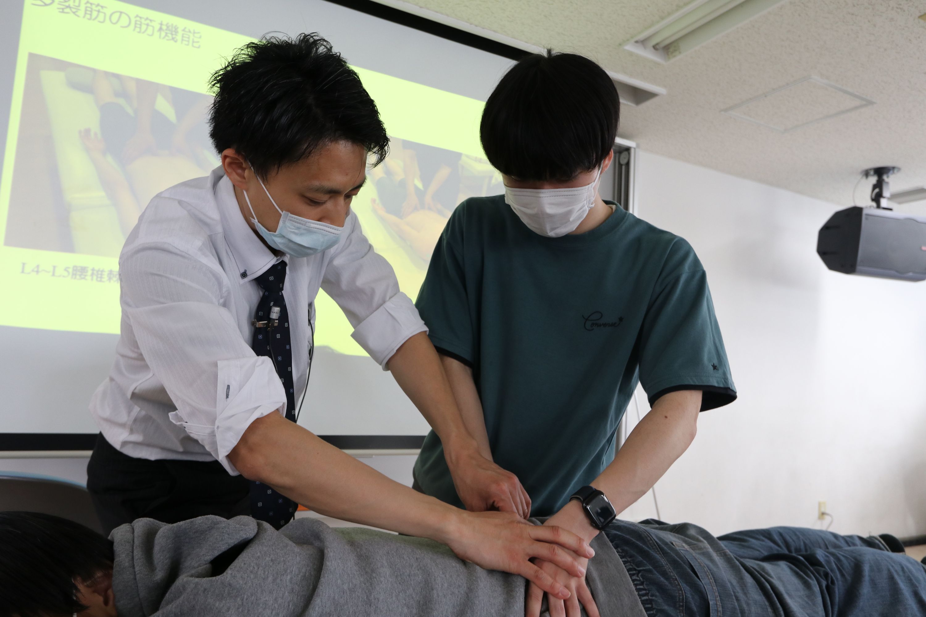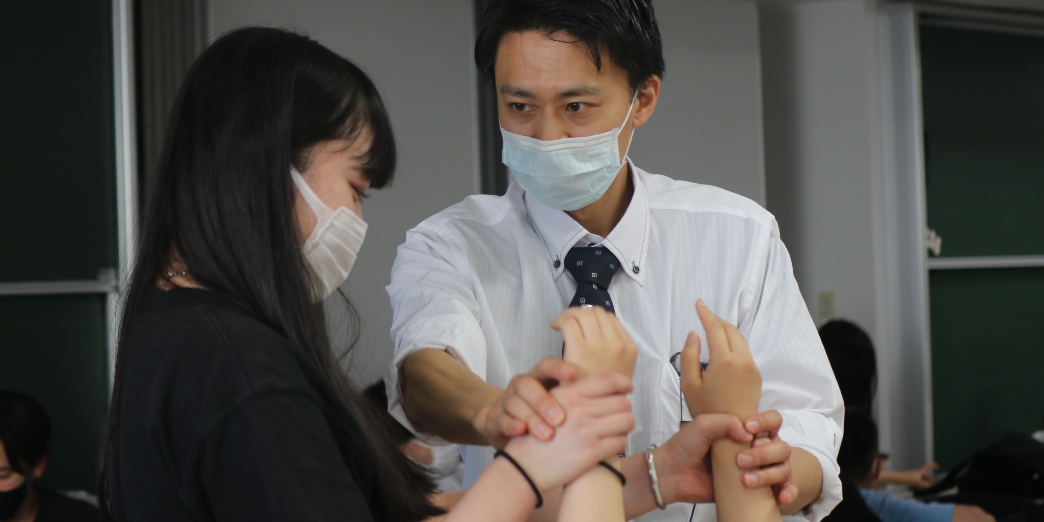 実際に学生に聞くと「座学だけの授業展開ではなく、実際に身体を動かした実技を含めて教えてくださるので分かりやすいです。また、先生自ら学生たちの所に巡回してくださり、直接丁寧に分かるまで何度も指導してくださいます。大好きな授業です!」と話してくれました。
