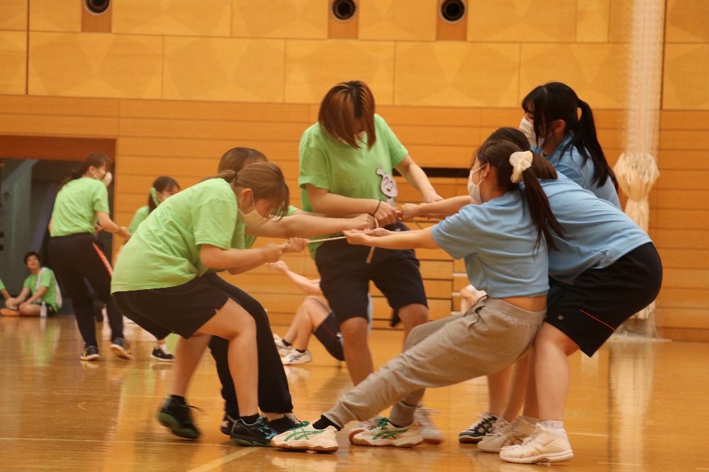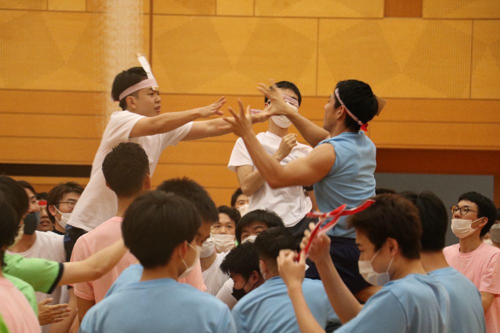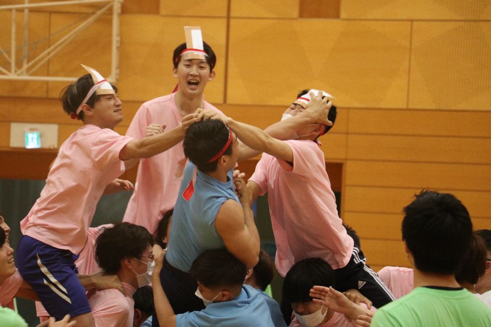 この行事は学生が主体となった「体育祭実行委員会」を結成し、実行委員会にて事前の企画や準備、そして当日の運営を担います。競技種目を決めるだけではなく、その競技の安全性や得点配分、出場者決め、用具準備など沢山の準備が必要となります。また、行事が盛り上がるような配慮や工夫も学生が主体ならではの演出等もありました。