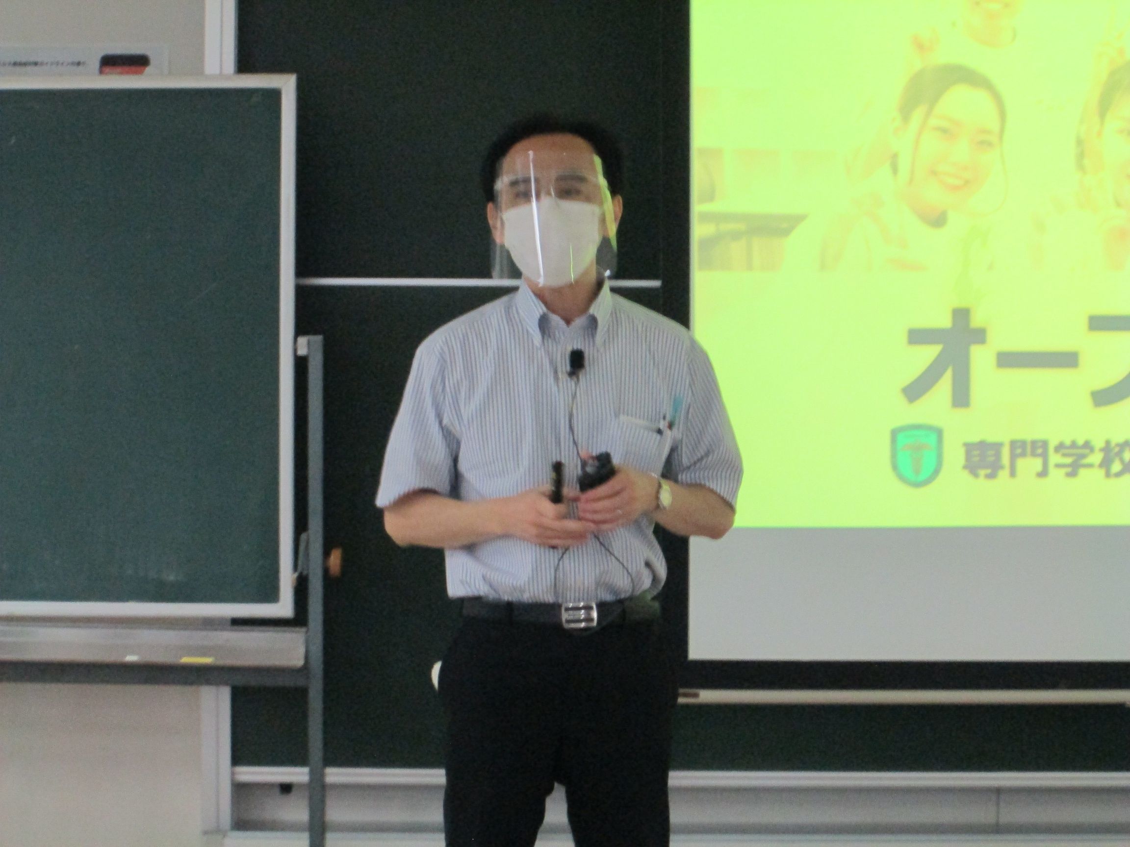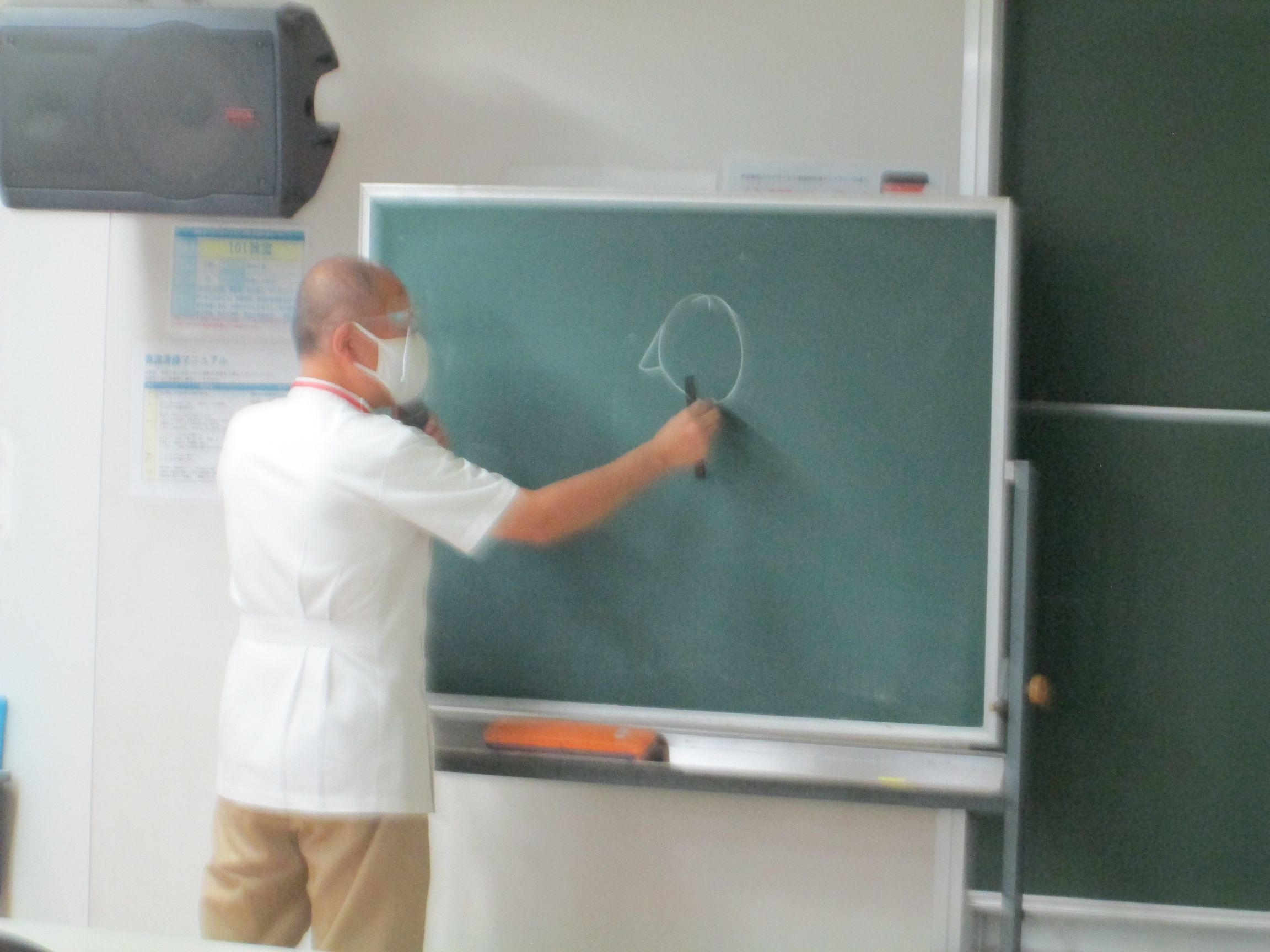 人体のことをスクリーンや黒板を使って、