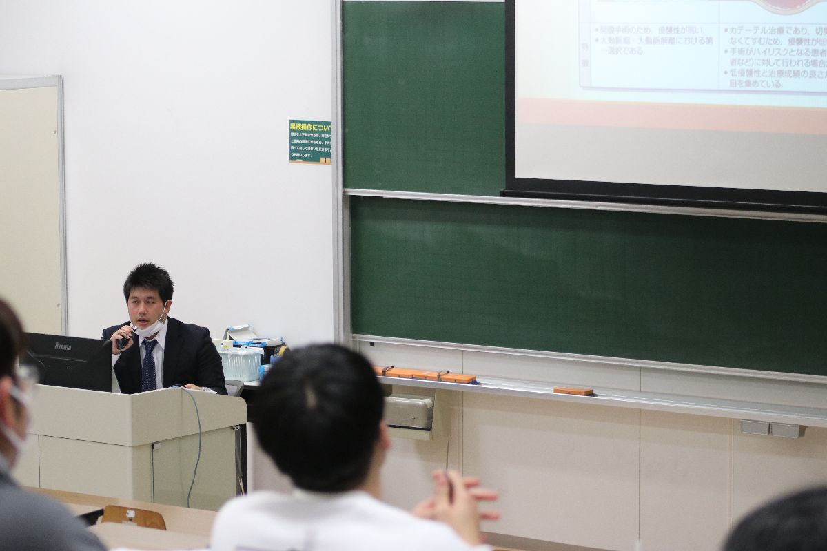 受講した眞尾くん(3年生)に聞くと「心疾患をもつ高齢者人口が増加している背景の中、理学療法士が関わる場面が多くなってきていると感じました。そのため学生たちはより関心をもって授業に励みました!」と話してくれました。