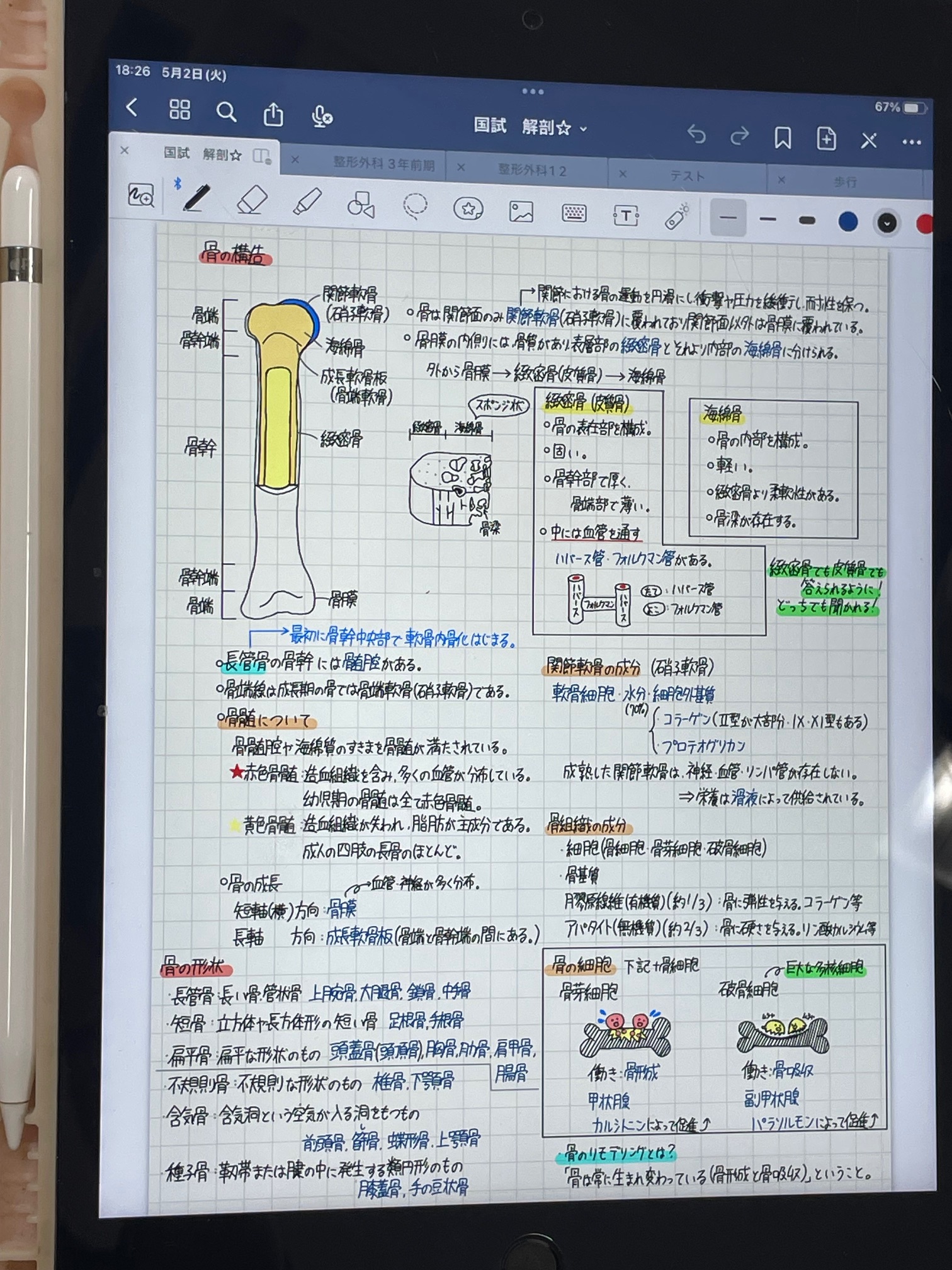 iPadアプリ「グッドノート」を使い、すべての授業や国家試験対策などを手書きでまとめています!