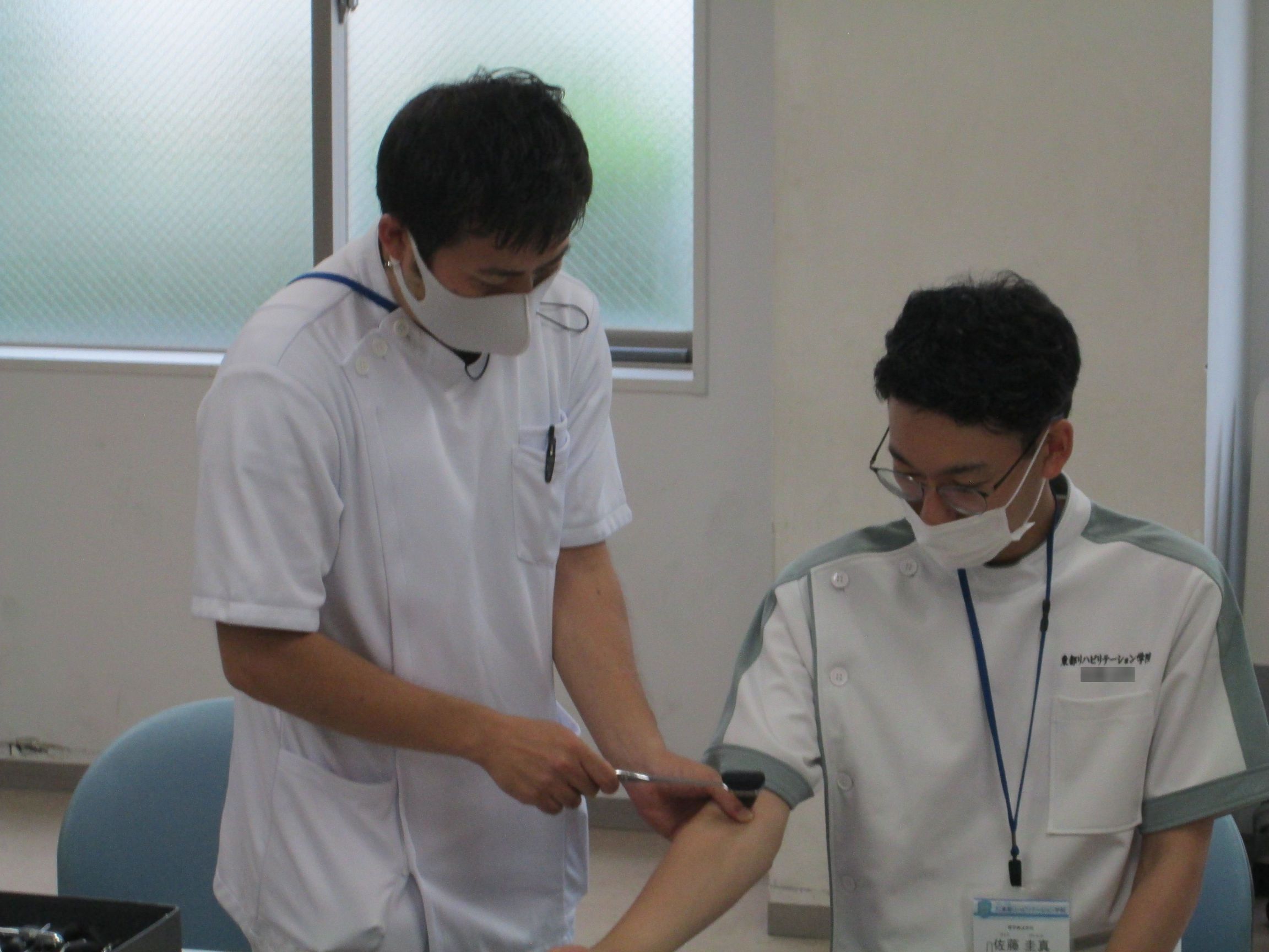 今回の体験授業は、塚元先生による「検査測定学 深部腱反射」という講義です。