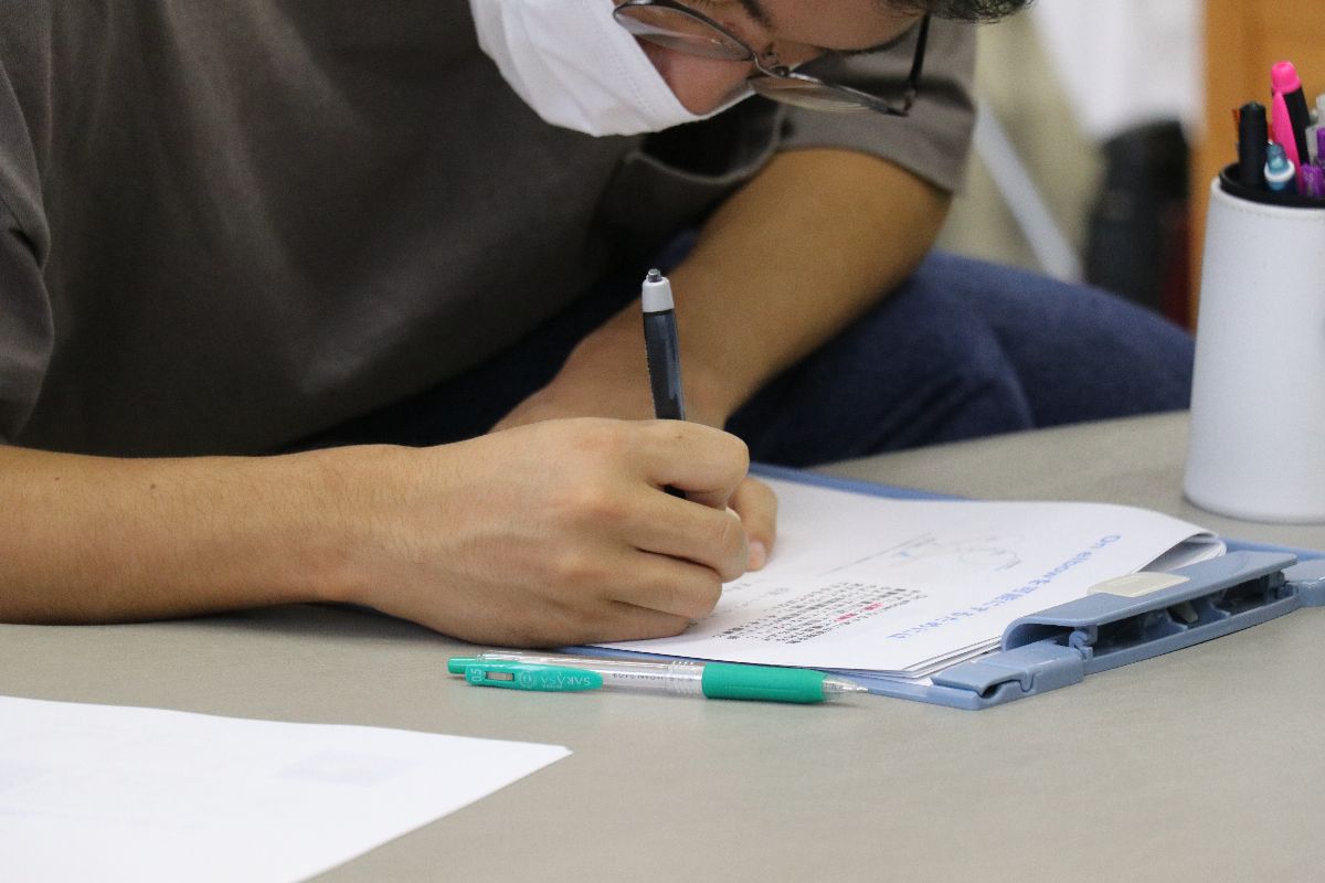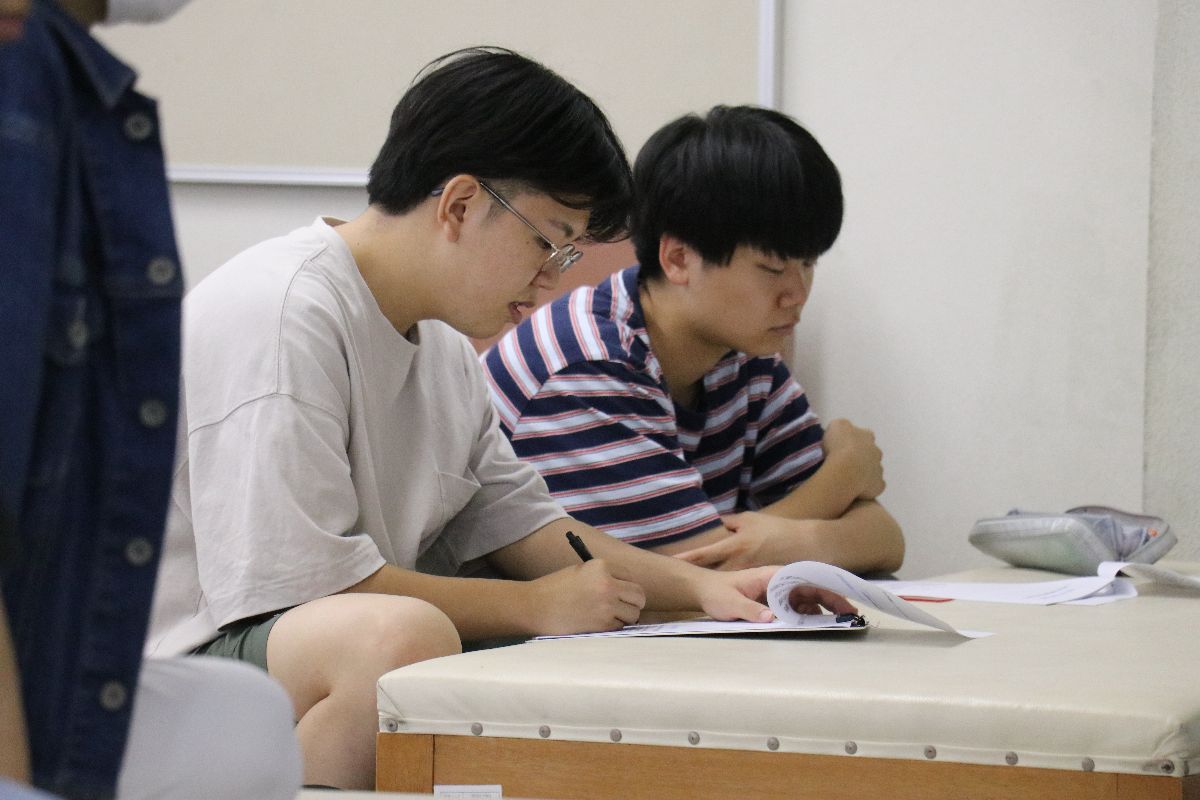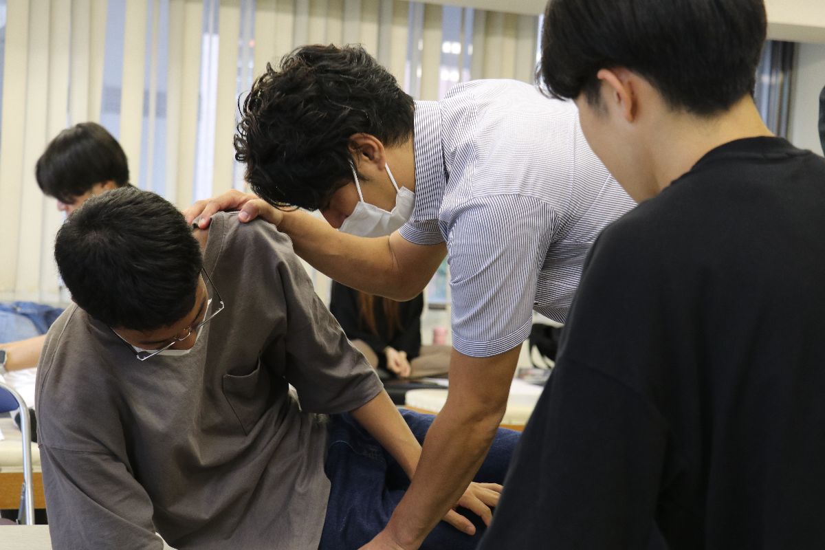 学生たちが自ら考えられるよう、学生同士のグループで1つのテーマについて考えつつ実技を身体を動かすことで意見を出し合いました。