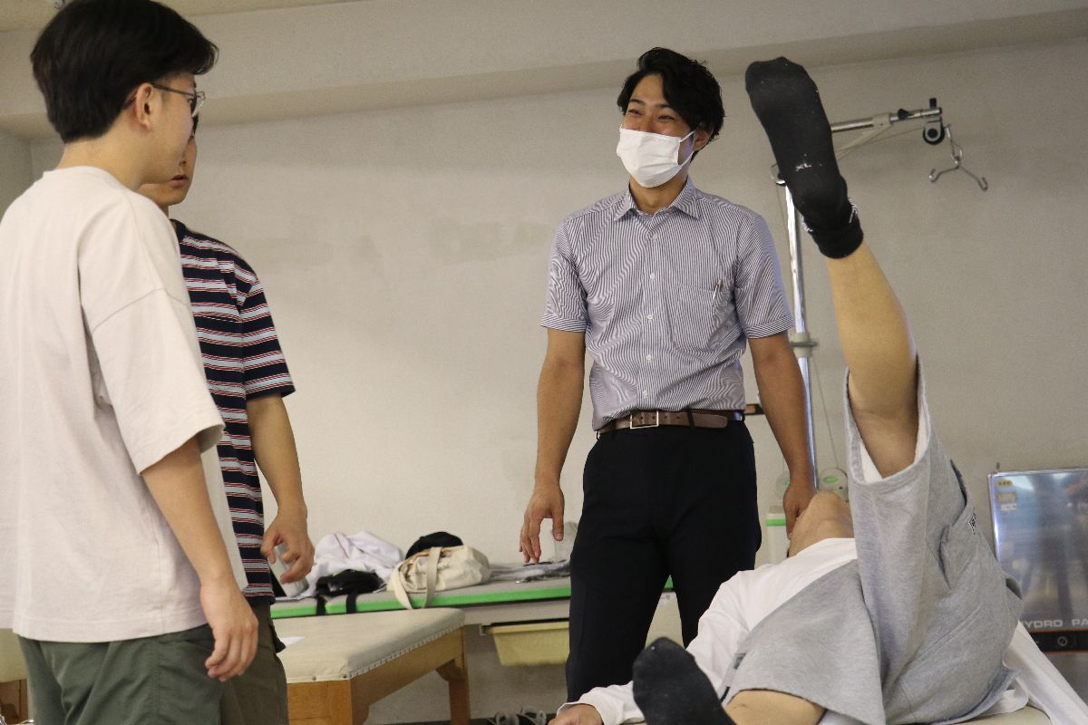 3年後期授業「動作分析Ⅱ」は、森山脳神経センター病院(東京都江戸川区)理学療法士の佐藤佑先生にご担当いただいています。