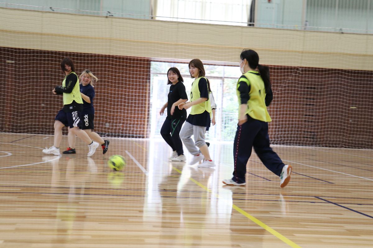 学生たちがチームワークを高め合い、楽しく身体を動かしつつ、「自分が楽しい=みんなが楽しい」になるように心がけています。