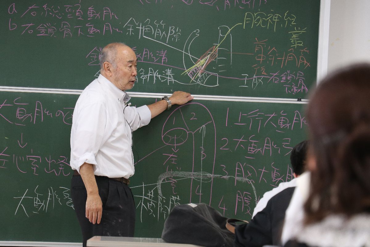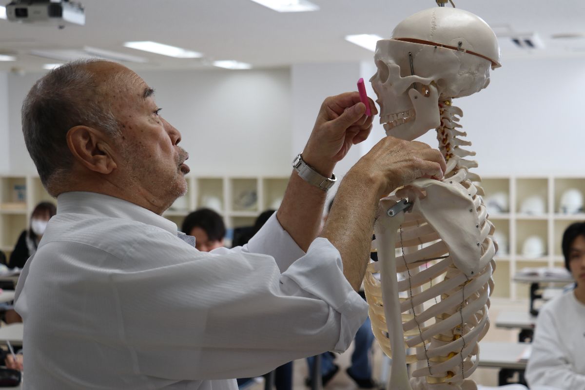 本授業担当の吉田先生は、北里大学衛生学部を卒業後、聖マリアンナ医科大学解剖学教室に入局、その後、日本歯科大学にて准教授として教鞭をとられました。現在は本校専任教員として従事しています。教育現場には約50年間ご活躍されています。