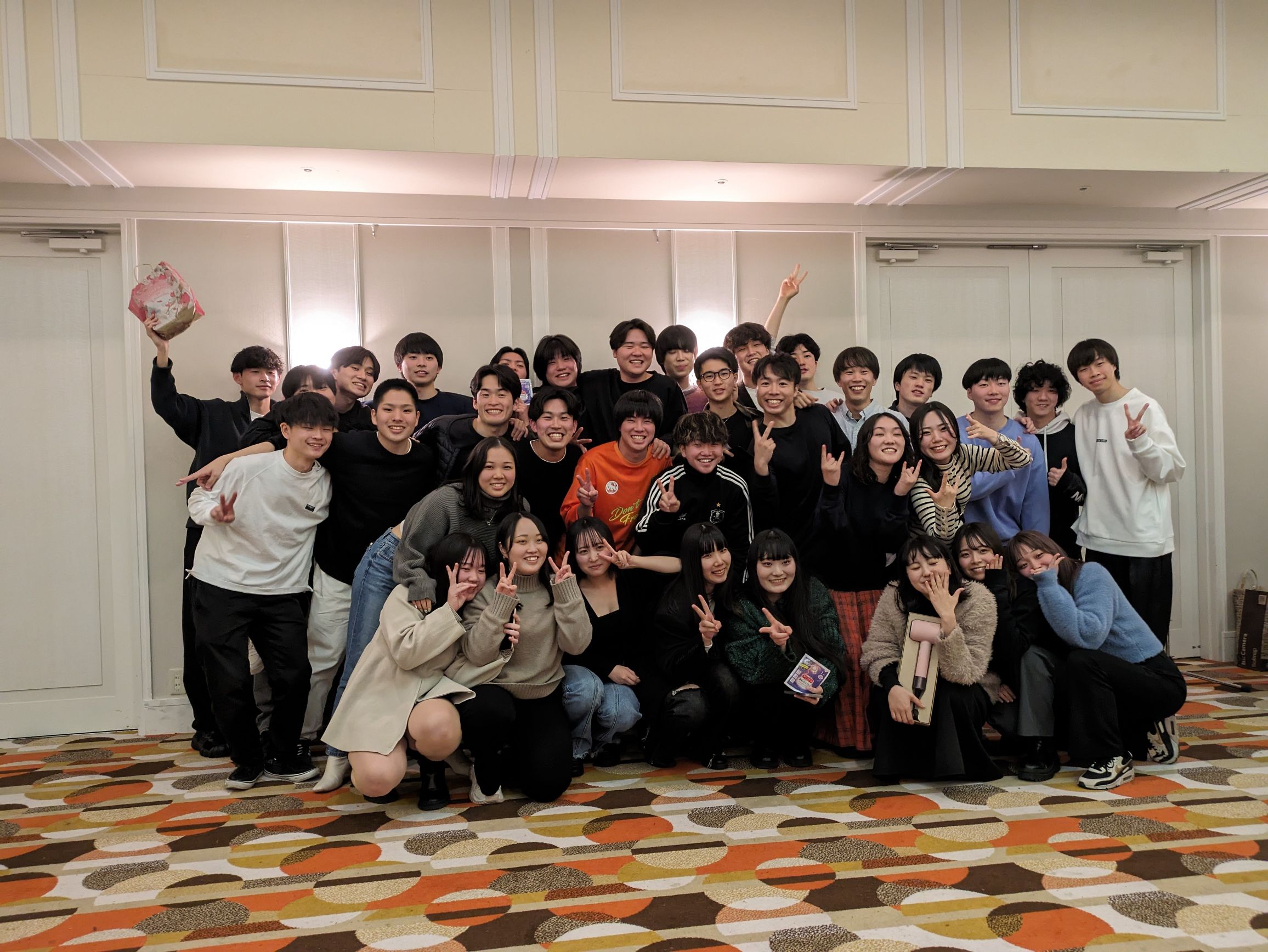 2日目の夜にはホテルにて夕食会を行い、ビンゴ大会は盛大に開催され、