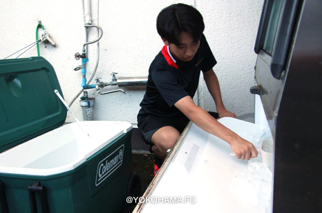 実習では、横浜FCトップチームに帯同し、トレーナーやスタッフのご指導のもと、プロスポーツの現場を間近で体験しました。アイシングや水分補給の準備、トレーニング補助、ウォーミングアップ、練習後のケアやリハビリの見学など、多岐にわたる業務を学ぶ機会となりました。プロスポーツの現場を実際に体験できることは極めて貴重であり、山影さんにとって今後の進路を考える上でも大きな学びと刺激となりました。ここに、このような貴重な実習の機会を提供いただいた横浜FCの皆さまに、深く感謝申し上げます。